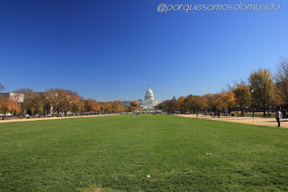 Começamos próximo ao Smithsonian Castle, centro de visitantes do Instituto , de onde se tem uma visão ampla do The Mall. Caminhamos em direção ao Capitólio (falaremos dele no próximo post), admirados com a beleza dos prédios, em contraste com o céu azul e as coloridas árvores do outono.