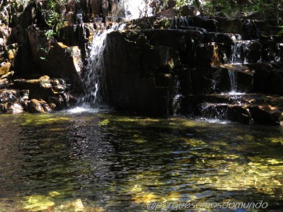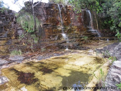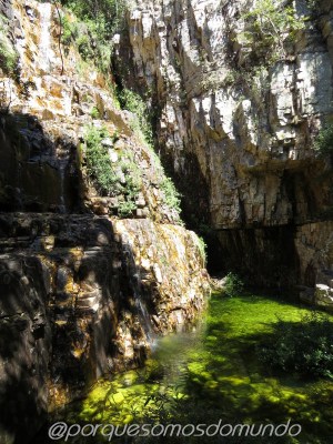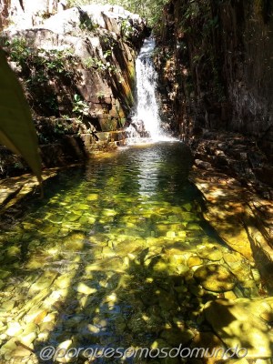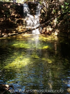 São oito cachoeiras, cada uma com uma característica especial, acessíveis por uma deliciosa trilha de 4,5 km em meio ao cerrado, em verdadeiro contato com a natureza. As cachoeiras são relacionadas à mitologia dos Dragões, tendo cada uma placa com a explicação (que também pode ser acessada no blog das cachoeiras). Nos encantamos pela terceira, a Pérola do Dragão, que forma um poço lindo, de águas verdes.