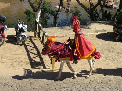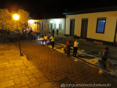 Chegamos a Pirenópolis na Semana de Corpus Chisti, que é celebrado sessenta dias após a Páscoa, de forma que ainda vimos alguns mascarados pelas ruas, personagens típicos das Cavalhadas… E vivemos também a experiência de acompanhar a confecção dos tapetes (na noite da véspera) para a passagem da procissão de Corpus Christi.