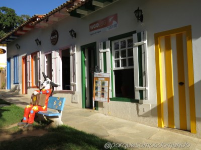 E aí passamos a falar de outra coisa boa pra fazer em Pirenópolis: passear por suas lojas de arte e artesanato. A cidade tem uma profusão delas, com opções das peças mais diversas, em tecido, madeira, louça, coloridas, com flores, com a pombinha que simboliza o Espírito Santo, com os mascarados do Divino… é impossível não se encantar com alguma coisa. Ainda há a opção de uma feirinha, que funciona algumas noites da semana (acho que a partir da quinta), na praça do coreto.Visitar Pirenópolis foi uma rica experiência, de conhecer uma cidadezinha charmosa, que ainda preserva suas raízes históricas, que oferece boas sensações ao paladar e que nos coloca em contato com a energia renovadora de suas águas!