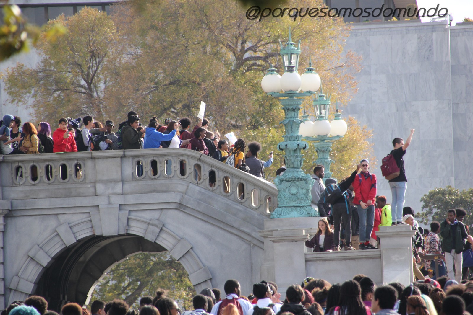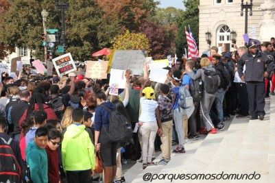 Quando passamos por lá, nos deparamos com um protesto de centenas de jovens, em razão do presidente que tinha sido recém-eleito, apresentando medidas sectárias e preconceituosas.